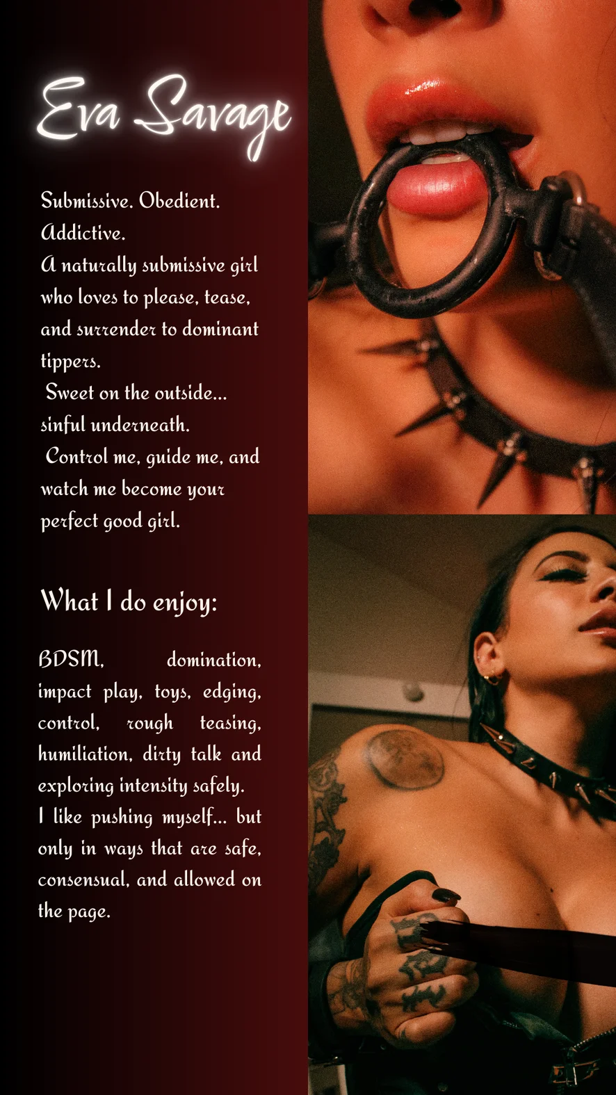 I love pain, control, and pleasing the right master.