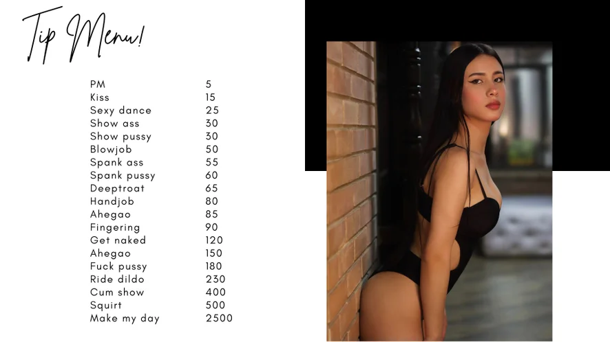 Ahegao, Tapas, Striptease, Rebolando, Avaliação de pintos, Exibicionismo, Brinquedos para mamilos, Dança erótica, Masturbação, Hardcore, Salto alto, Topless, Cavalgada, Boquete, Fetiche por pés, Penetração com dedos, Dildo ou vibrador, De quatro, Capô de fusca, Gozando dentro, Mandar bater uma, Humilhação, Atuação, Garganta profunda, Orgasmo, Show com óleo, Ejaculação feminina, Brinquedos sexuais, Chuveiro