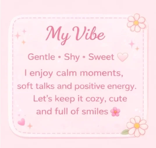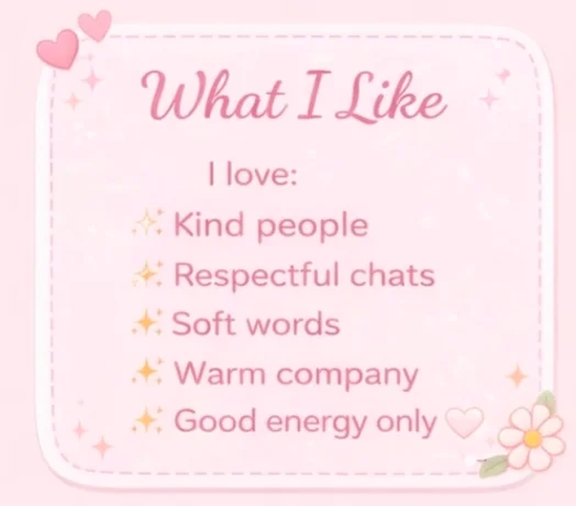 I love soft conversations, kind energy, and warm, cozy moments stay with me and let’s enjoy a calm and sweet time together 💕